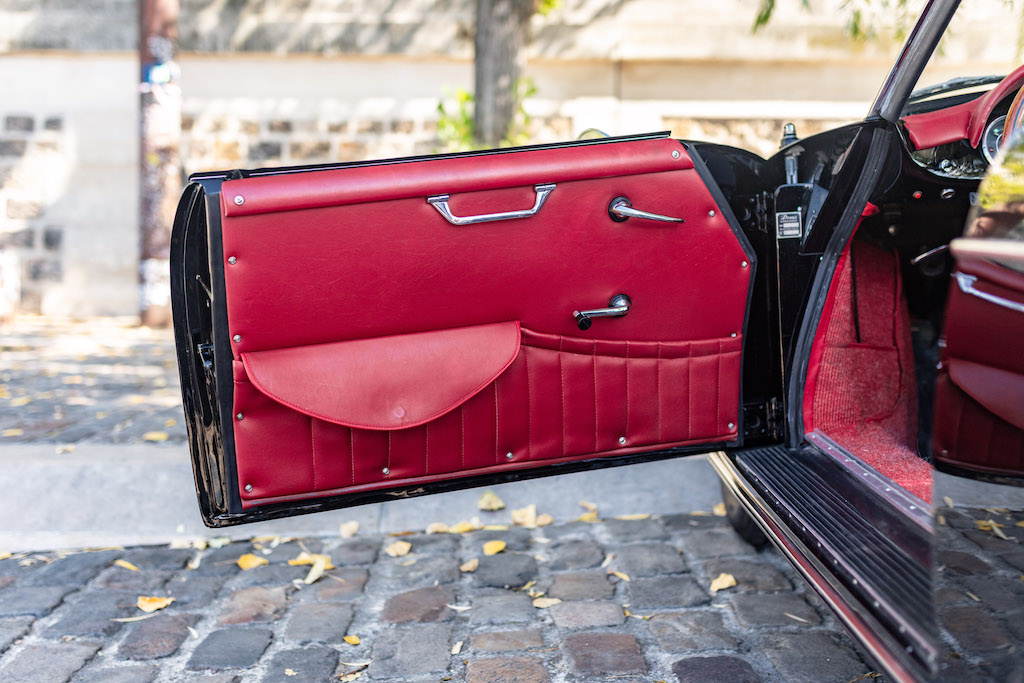 Cette auto a été acquise par l’actuel propriétaire en 2008 auprès d’un spécialiste réputé. La voiture est née blanche, il en avait fait l’acquisition restaurée en noir / intérieur rouge.
